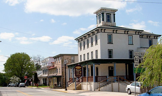 Originally part of West Nantmeal Township, early settlement in the area of present-day Elverson responded to its situation along an established trade route from Lancaster to the French Creek iron furnaces at a location where travelers had access to three strong springs. Situated on the edge of Chester County and looking westward into the broad Conestoga Valley of Lancaster and Berks Counties, there are regional records of iron ore being dug here in the late 17th century.