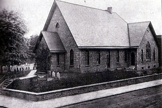 The building houses the administrative offices, Museum, and social hall at the Church Street level with additional storage upstairs. The present building was erected in 1873 to replace a smaller church of plainer architecture. The 1873 structure is an English Gothic style building made with Chester County fieldstone.